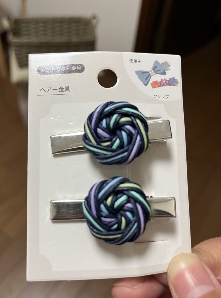 セリアのヘアー金具を使用しています。複数色が入っているとカラフルで可愛いかも。ちょっとネオンっぽいイメージかな?